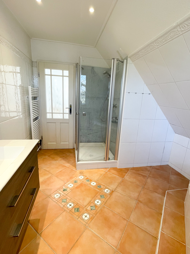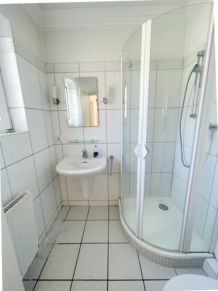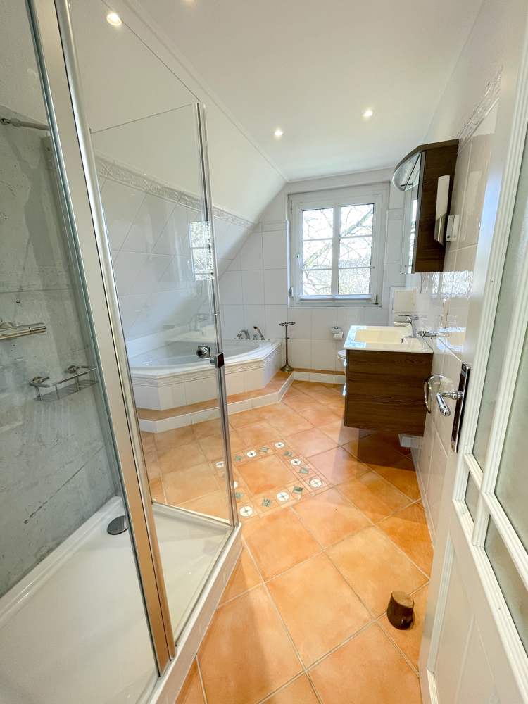• Ein Gäste-WC mit Dusche, ein Badezimmer mit Badewanne und Dusche