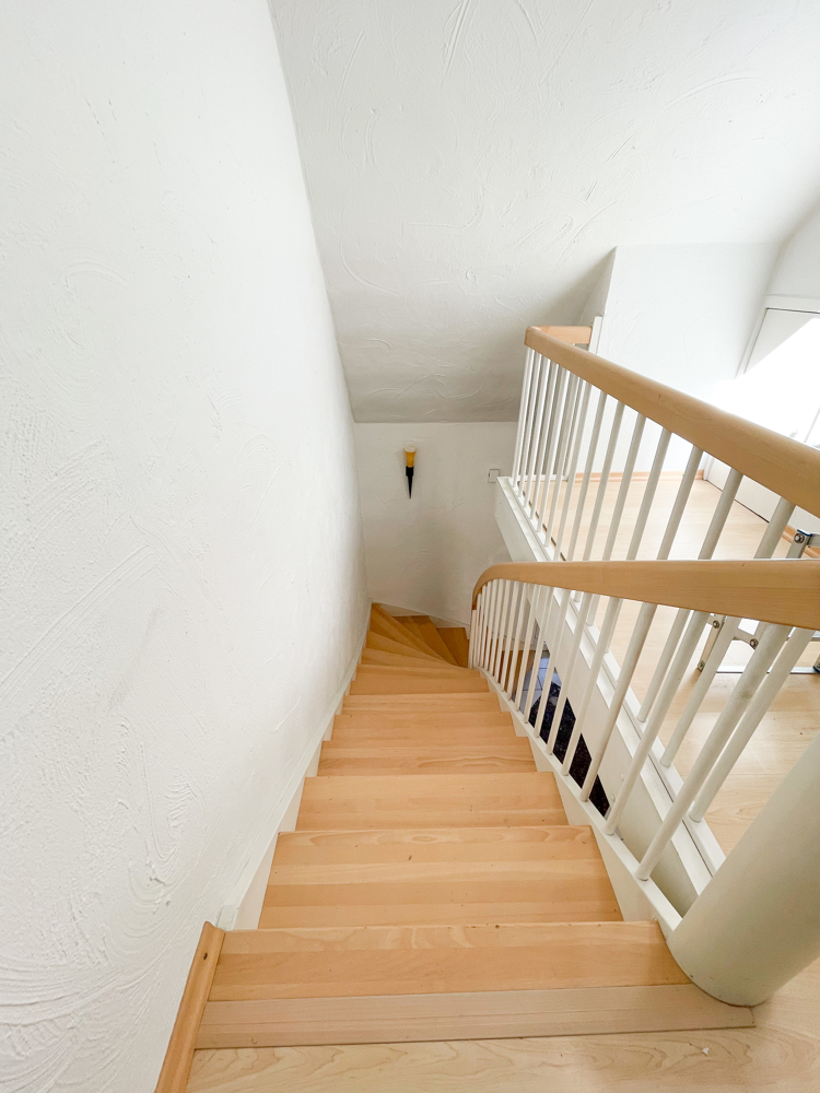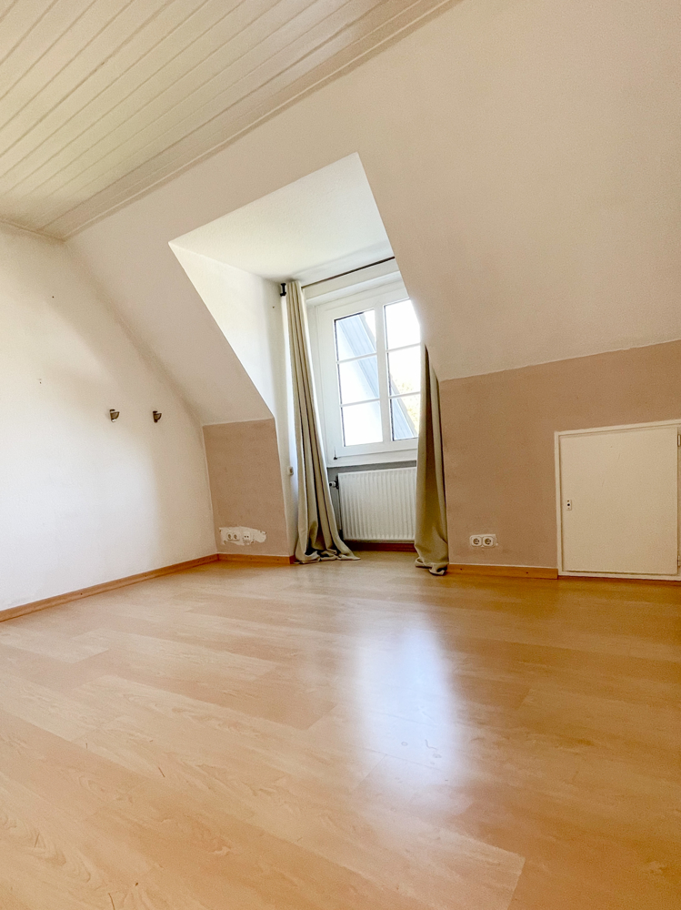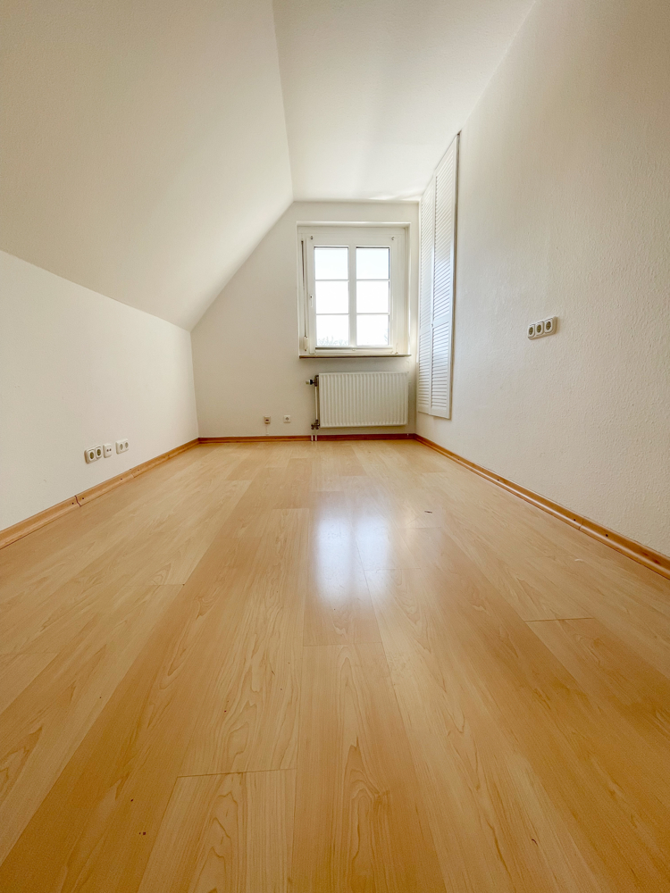 Im Obergeschoss des Hauses erwarten Sie das stilvolle Badezimmer mit Dusche und Badewanne, zwei großzügige Zimmer, welche als Schlaf- oder Kinderzimmer genutzt werden können sowie ein drittes, etwas kleineres Zimmer, welches sich ebenfalls super als Kinder-, Arbeits- oder Gästezimmer anbietet. Über eine Raumspartreppe gelangen Sie in den ausgebauten Spitzboden, welcher ein schönes weiteres Zimmer bietet, dass jedoch nicht zur Wohnfläche zählt.