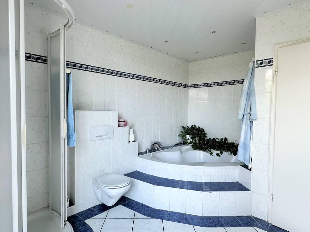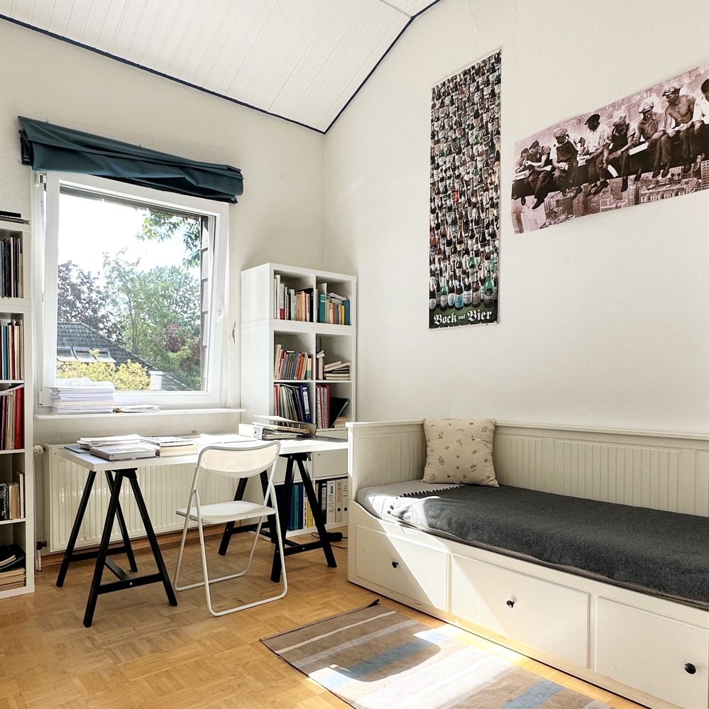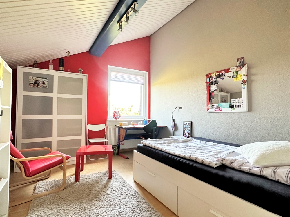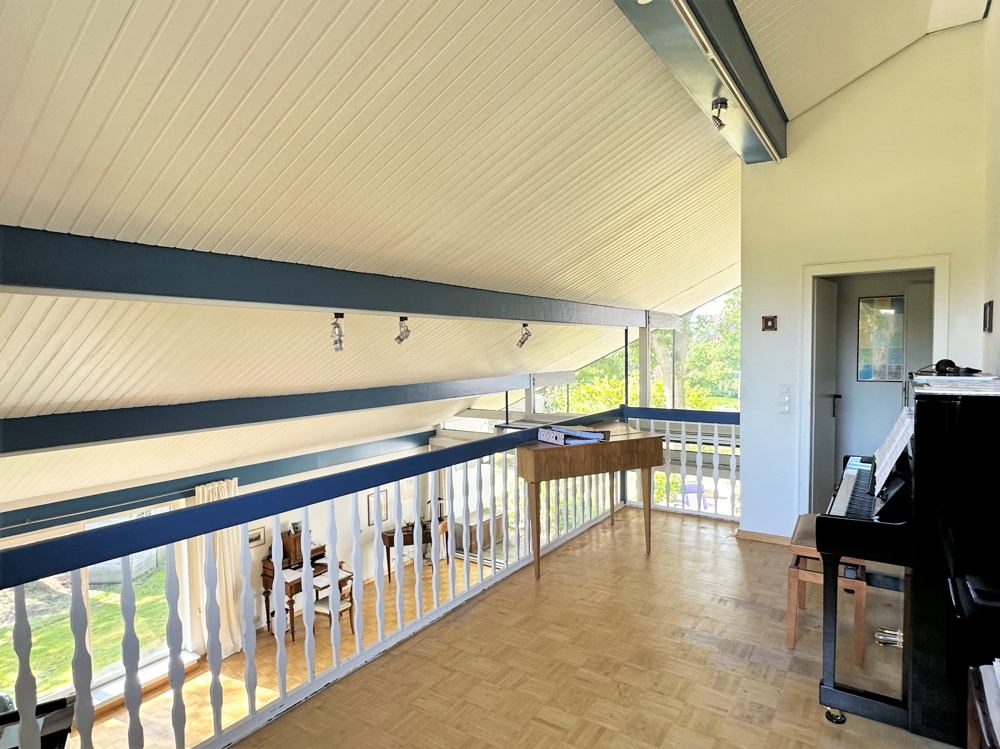 Aus dem Erdgeschoss erreichen Sie über eine tolle Schiffstreppe das Obergeschoss. Dort befinden sich weitere 4 helle Zimmer, die sich perfekt als Schlafzimmer, Kinderzimmer oder Arbeitszimmer eignen. Den Zimmern direkt angeschlossen ist ein kleineres Badezimmer mit Dusche. Das OG verfügt auch über ein schönes Atrium, von wo aus Sie den Wohnbereich im Erdgeschoss überblicken können.