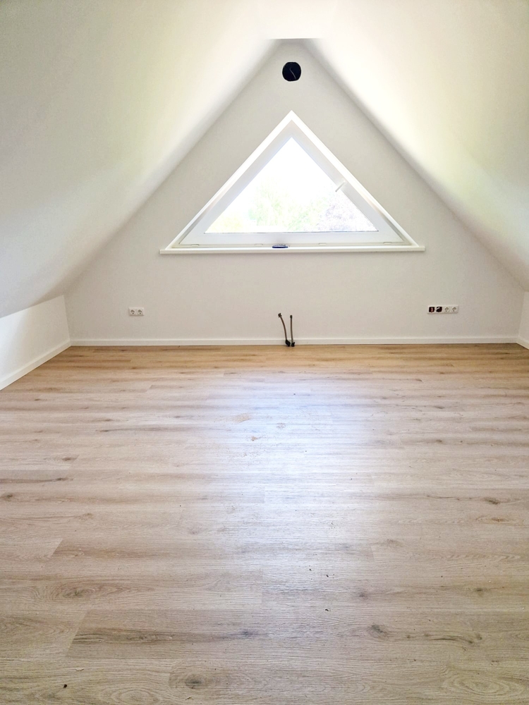 Die moderne Doppelhaushälfte erstreckt sich über Erdgeschoss, 1. Obergeschoss und einen ausgebauten Spitzboden, der als vielseitig nutzbares Studio dient. Mit einer Gesamtfläche von ca. 119 qm bietet das Haus großzügigen Wohnraum und hochwertigen Wohnkomfort.
