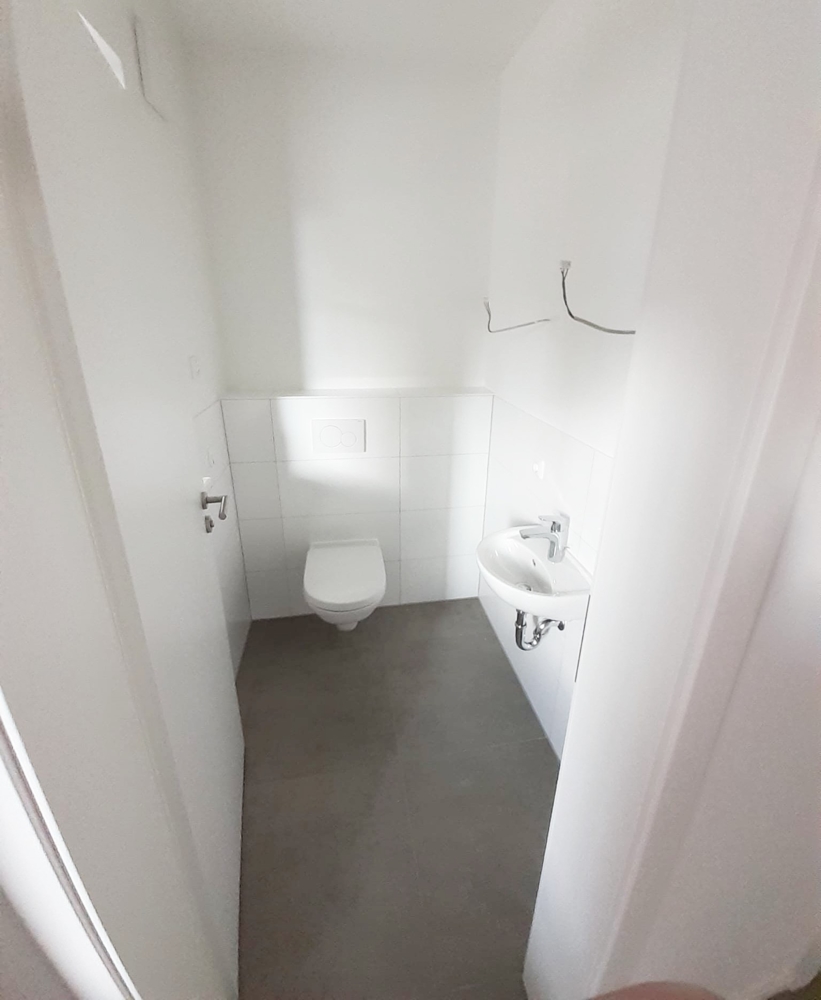 Im Erdgeschoss erwartet Sie ein schöner Wohn-Essbereich, der durch seine Helligkeit und den direkten Zugang zur Terrasse und zum Garten besticht. Die Küche ist mit einer freundlichen, weißen Einbauküche ausgestattet. Ein Hauswirtschaftsraum und ein Gäste-WC ergänzen die Funktionalität dieses Stockwerks.
