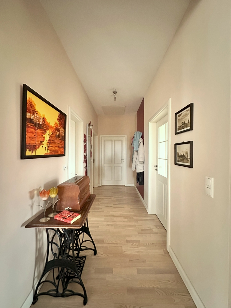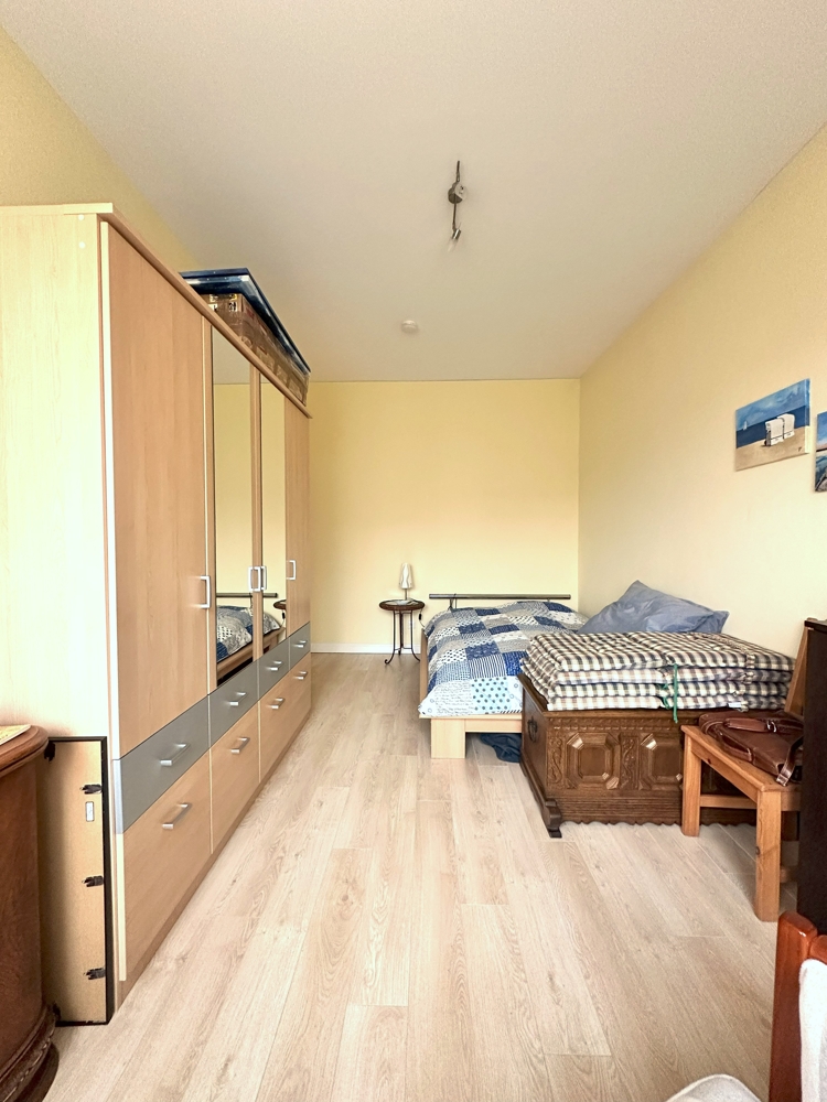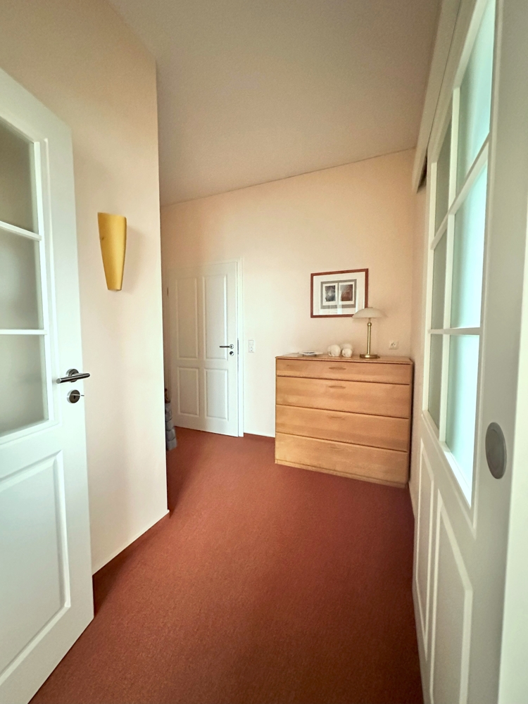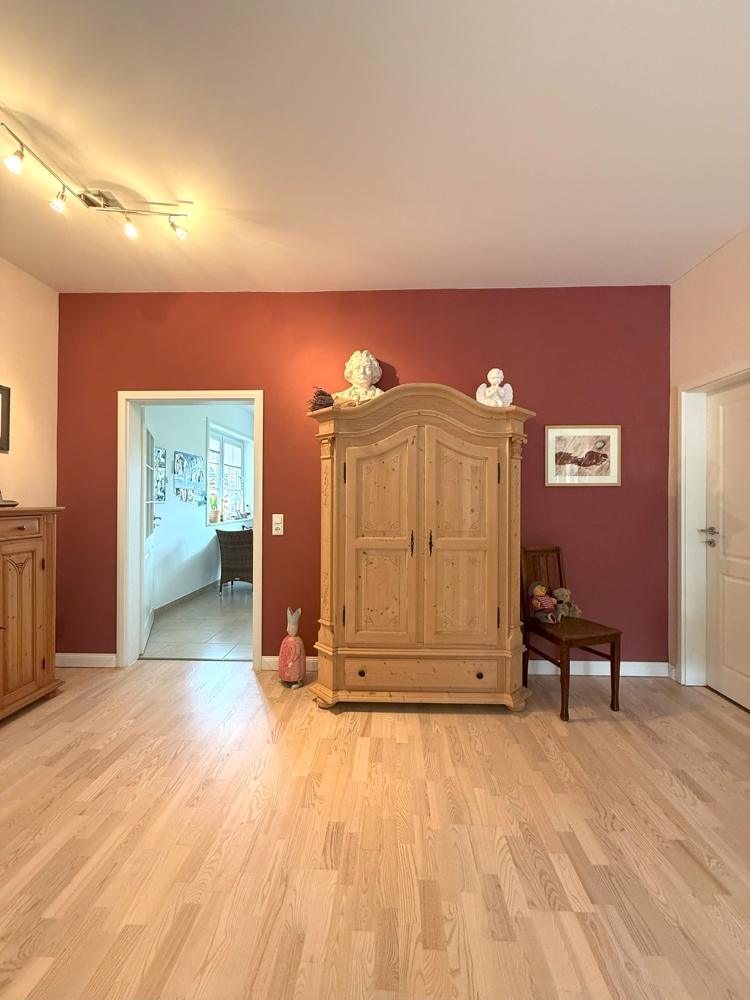 Zum Haus gehört auch eine Einliegerwohnung mit separatem Eingang, die an die jetzige Eigentümerin vermietet wird. Die Wohnung verfügt über zwei helle Zimmer, die sowohl als Wohn- als auch als Schlafbereich gestaltet werden können, eine Küche, ein Badezimmer sowie einen praktischen Abstellraum.