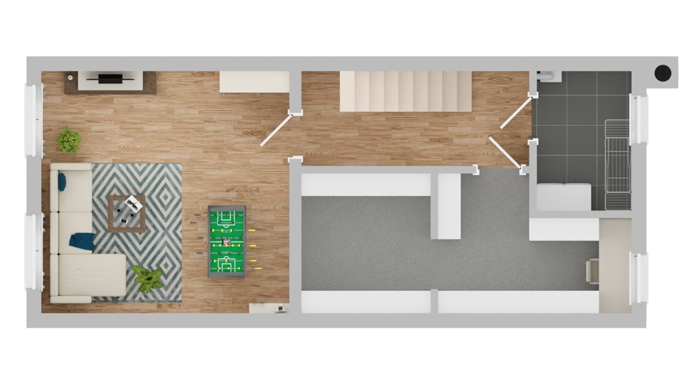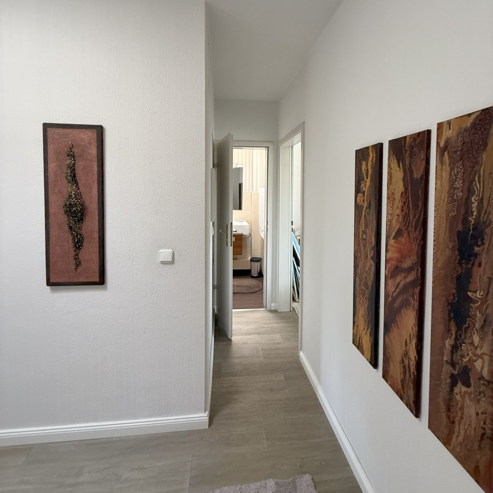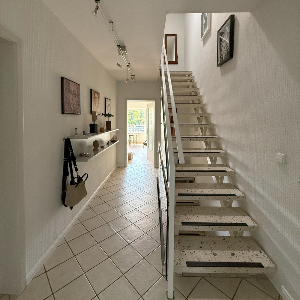Besonders hervorzuheben sind die Deckenfenster im Obergeschoss in dem Flur und den beiden Badezimmern, die trotz innenliegender Lage natürliches Licht hereinlassen.