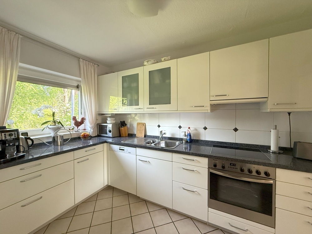Beim Betreten des Hauses gelangen Sie zunächst in einen einladenden Eingangsbereich, der Ihnen Zugang zu den verschiedenen Räumen im Erdgeschoss verschafft. Im Eingangsbereich befindet sich das praktische Gäste-WC sowie ein Einbauschrank. Über den Flur erreichen Sie zudem die gemütliche Küche, welche mit einer Einbauküche ausgestattet ist und Zugang zum Essbereich ermöglicht. Der lichtdurchflutete Wohn- und Essbereich bietet durch große Fensterfronten einen herrlichen Blick in den Garten und ermöglicht einen direkten Zugang zur Terrasse.