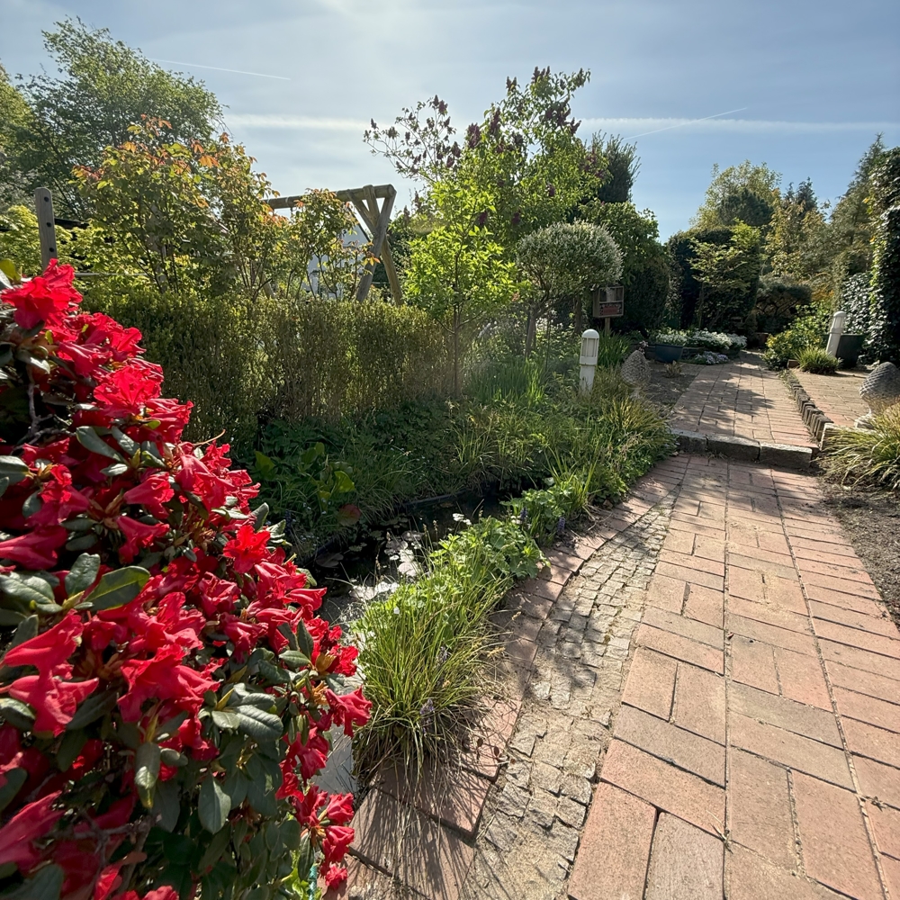 Der liebevoll angelegte Garten mit gemütlichen Sitzbereichen bieten Raum für ruhige Momente im Grünen.
