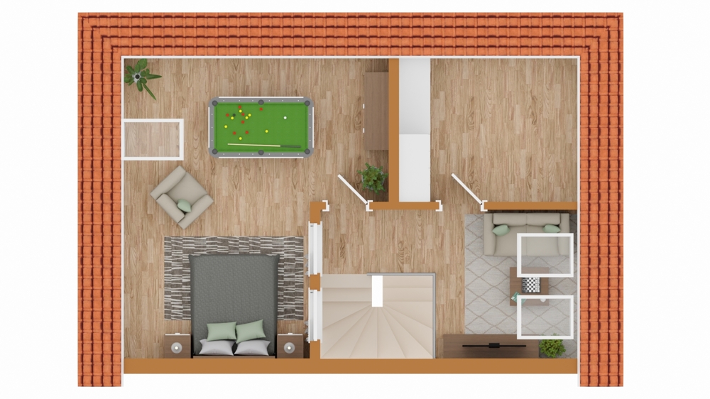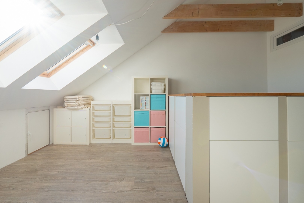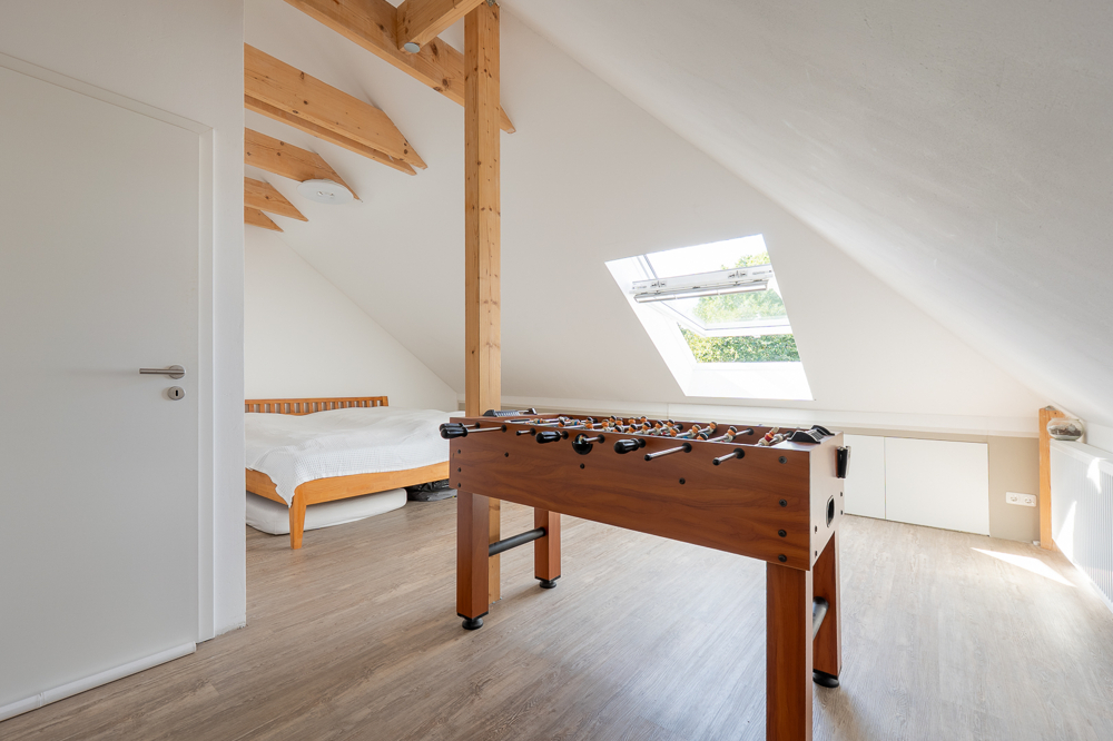 Das ausgebaute Dachgeschoss hält einen weiteren Raum bereit, der flexibel als Schlaf-, Arbeits-, Hobby- oder Gästezimmer genutzt werden kann. Daneben ist ein Abstellraum und eine Empore vorhanden.