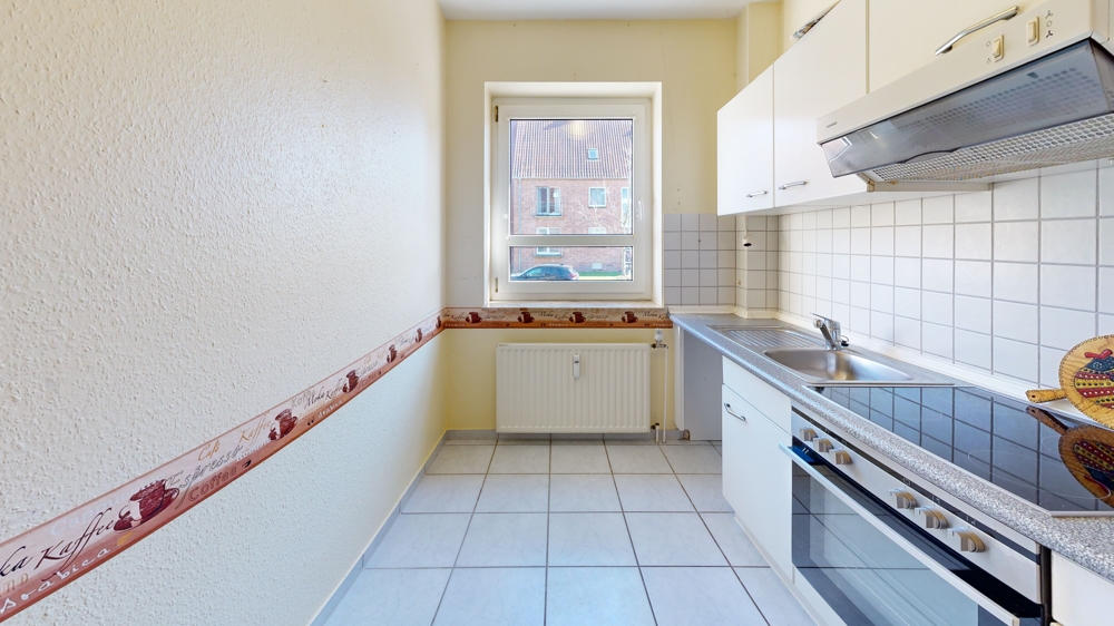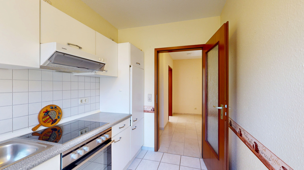 Mit einer Wohnfläche von ca. 66 m² überzeugt die Wohnung mit ihrer durchdachten Raumaufteilung. Über den Flur gelangen Sie in sämtliche Räume. Im Eingangsbereich sorgt ein praktischer Wandschrank für zusätzlichen Stauraum. Das Badezimmer ist mit einer Badewanne ausgestattet und bietet eine solide Grundlage für komfortables Wohnen.