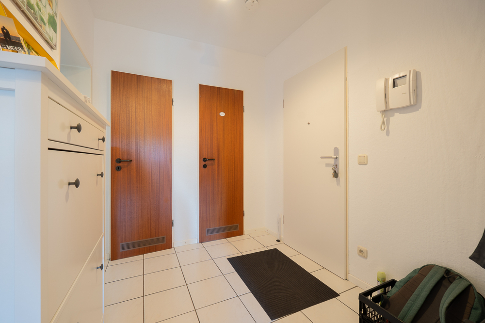 Die ca. 69 m² große Erdgeschosswohnung empfängt Sie über einen zentralen Flur, von dem aus sämtliche Räume bequem erreichbar sind. Neben einem praktischen Gäste-WC stehen eine Abstellkammer, eine Küche sowie ein Badezimmer zur Verfügung. Das Schlafzimmer bietet ausreichend Platz für individuelle Gestaltungsmöglichkeiten. Herzstück der Wohnung ist das großzügige Wohn- und Esszimmer mit direktem Zugang zur Terrasse, die zu entspannten Stunden im Freien einlädt.