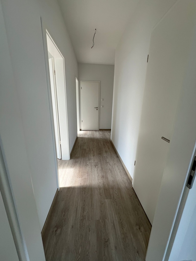 Ein großzügiger Flur führt in das lichtdurchflutete Wohn- und Esszimmer mit offener Küche. Bodentiefe Fenster im Wohnzimmer führen auf den schönen Südbalkon. Das zeitgemäß geflieste Badezimmer verfügt über eine Badewanne mit faltbarer Duschabtrennung. Ein Gäste-WC und ein geräumiger Abstellraum in der Wohnung bieten zusätzlichen Komfort. Die Wohnung ist ausgestattet mit: Großformatigen Fliesen, Fußbodenheizung, Außenjalousien, 3-fach-Verglasung, EDV-Verkabelung, Solarerwärmung und einem Fahrstuhl.